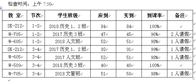 ,德赢官网教学自查小组对上课班级师生到课情况进行了检查,现通报如下:
